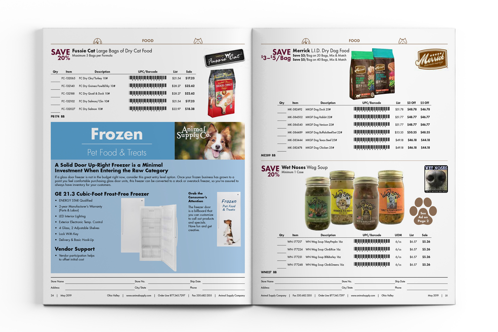 Animal Supply Co. has a freezer program to help retailers acquire freezing and refrigeration units so that they can stock a wider variety of food and treats for their customers. The ad used here in the May 2019 Ohio Valley Edition (and others) of the Retail Messenger reminds retailers that it's ok if their budget won't allow them to spring for a big glass door unit - there are other options to help them get started and they can upgrade later with the revenue they make selling frozen pet food and treats.