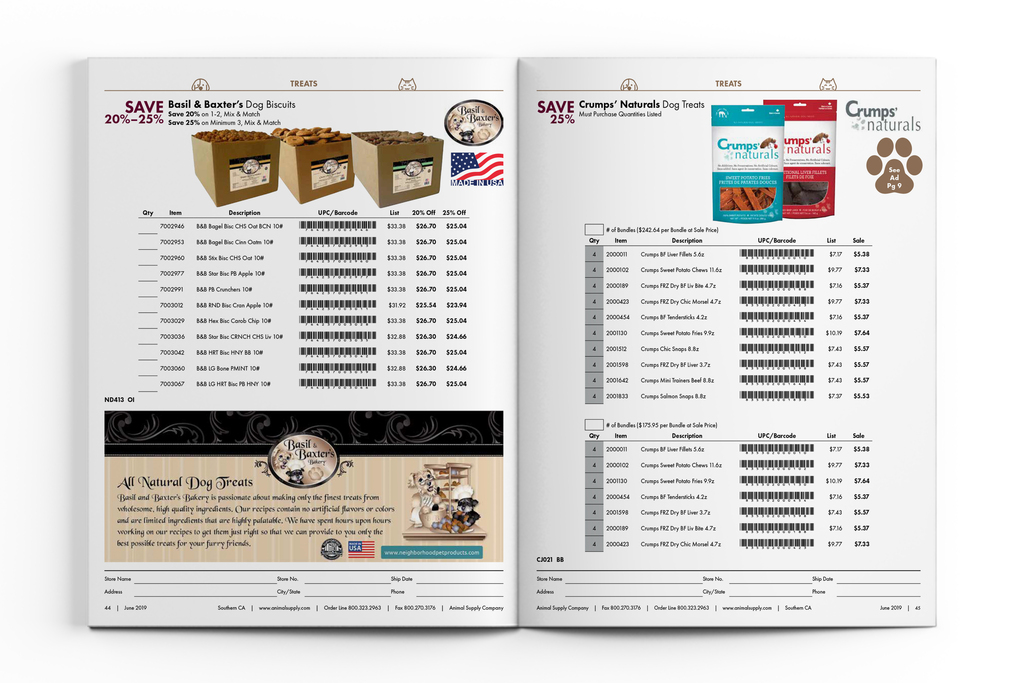 Animal Supply Co. owns a handful brands under the banner Neighborhood Pet Products. Among them is Basil & Baxter's Bakery, which produces gourmet, homemade-style dog biscuits using wholesome ingredients. This small ad and its larger look-alikes were used quite regularly in the Retail Messenger, like in this June 2019 Southern California Edition.